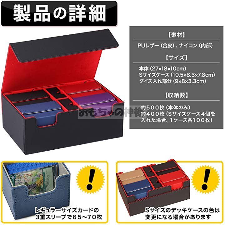 ・「サイズ」本体(27x18x10cm)Sサイズケース(10.5x8.1x7.8cm)、ダイス入れ部分(9x8x3.3cm) 「収納数」約500枚(本体のみ)、約400枚(Sサイズケース4個を入れた場合。
