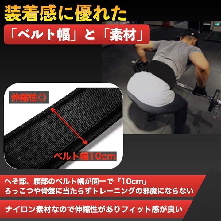 「装着感に優れたストレートベルト」ナイロン製のトレーニングベルトは軽量で幅が10cmと装着感に優れています。