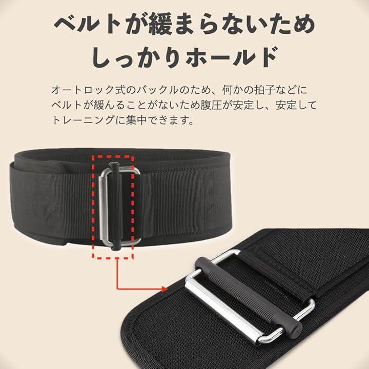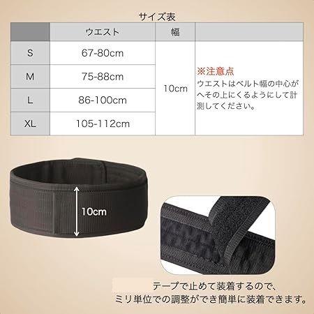 「ウエストサイズ」S:約67-80cm 、M:約75-88cm、L:約86-100cm、XL:約105-112cm「オートロック式でしっかりホールド」 ベルトのバックル部分にはオートロック式機能が搭載している。