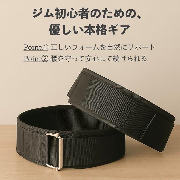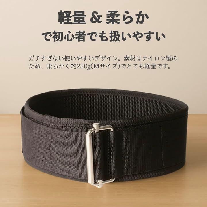 「装着感に優れたストレートベルト」ナイロン製のトレーニングベルトは軽量で幅が10cmと装着感に優れています。
