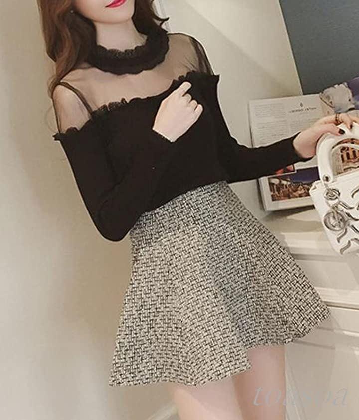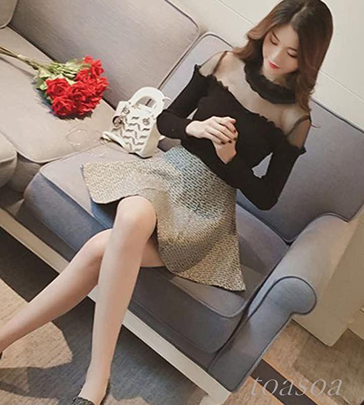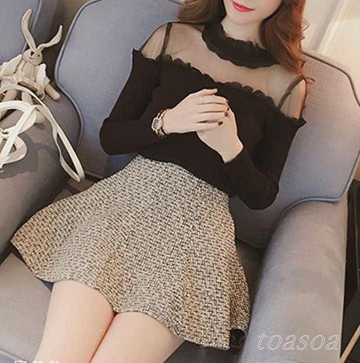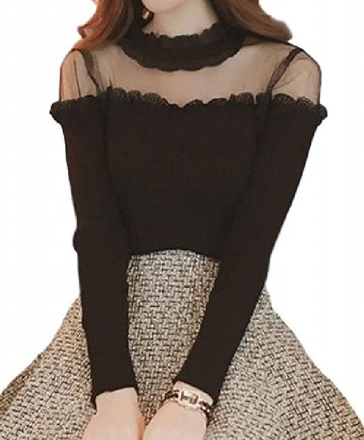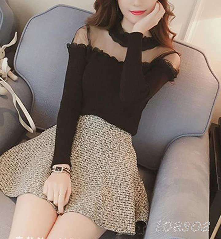 トーアソーアカットソーレディース長袖ハイネックレースオフショルダーtシャツ