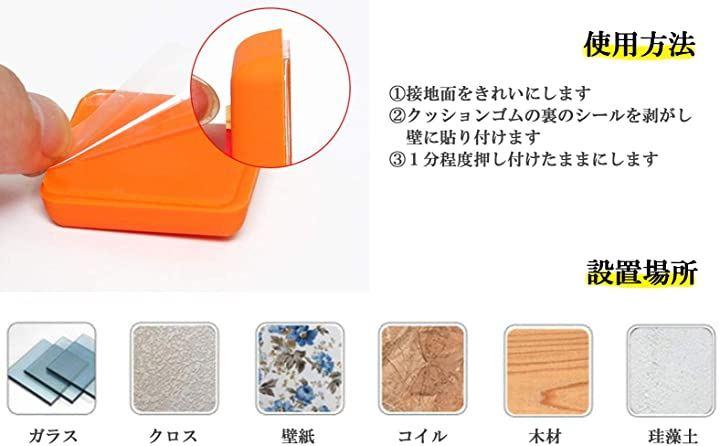 ・貼る箇所をきれいに拭いた後、シリコンゴムの裏のシートを剥がし貼り付け1分ほど押して取り付けてください。
