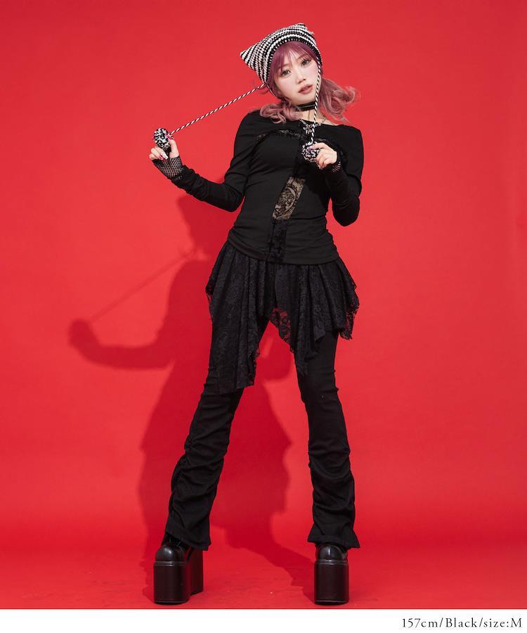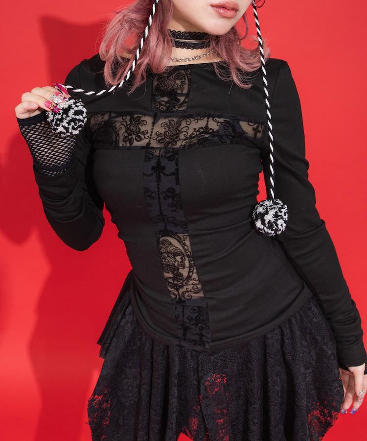 【ドクロ×レースで魅せる甘辛MIXカットソー】「かわいい」だけじゃ物足りないアナタにトレンド感たっぷりの透け感ドクロレース長袖カットソーが登場!◇POINT◇・繊細なドクロモチーフのレースがインパクト抜群・スケ感が絶妙!セクシーだけど品よく見える仕上がりです。・ボディラインを美しく魅せるタイトシルエットでギャル映え間違いなし・デニムでカジュアルに仕上げても、ミニスカートでバチバチにキメてもOK・周りと差をつける大人ギャルなカットソー、GETしちゃおう。