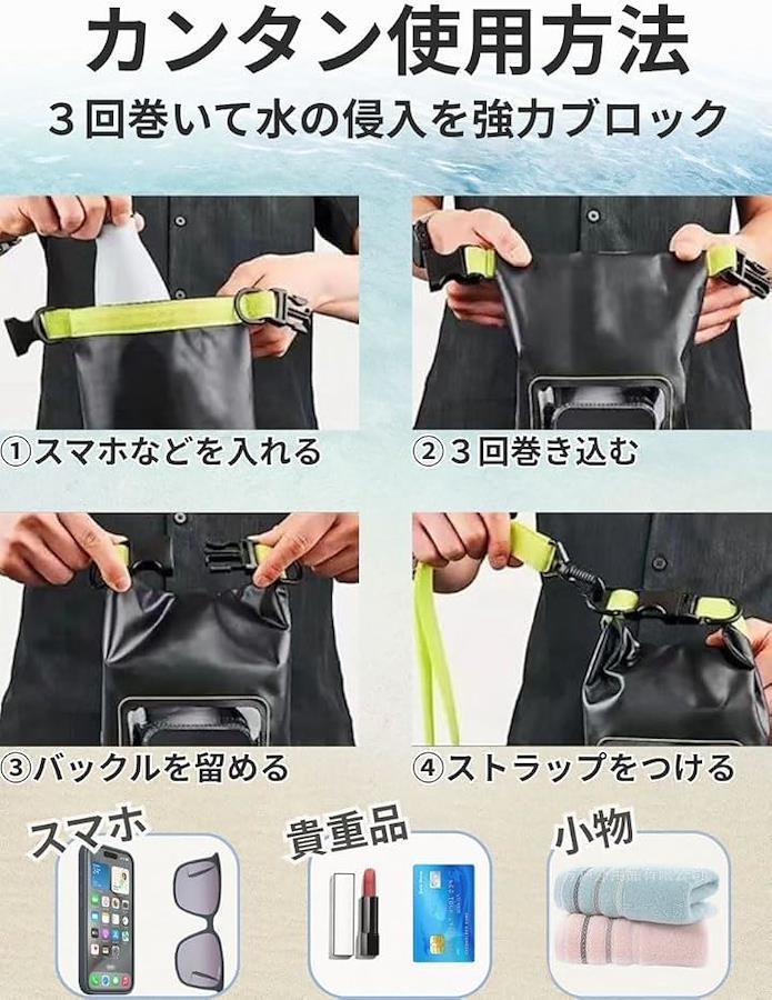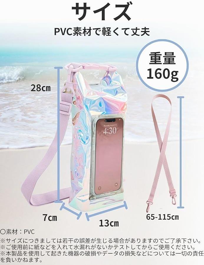 丈夫な生地で日常的な使用にも適しており、長く愛用できる防水スマホバッグです。