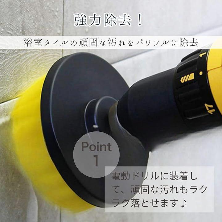「浴室タイルの頑固な汚れをパワフルに除去」電動回転で効率的に汚れをかき出し、手作業では落ちにくい水垢やカビもスッキリ掃除。