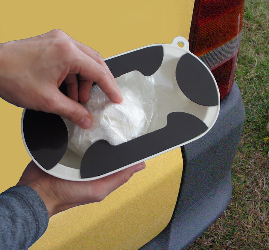 車に貼れるウンチ入れのBIGサイズ容量4倍、大型犬・多頭飼・旅行に最適。強力マグネットでボディーにピタッ!