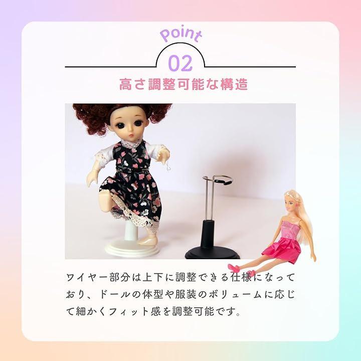 「高さ調整可能な構造」ワイヤー部分は上下に調整できる仕様になっており、ドールの体型や服装のボリュームに応じて細かくフィット感を調整可能です。