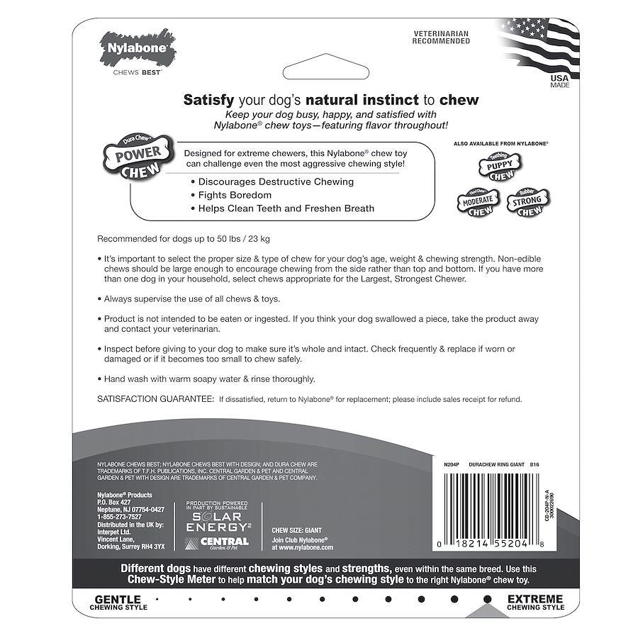 Long lasting durable nylon chew;Especially designed for strong chewers;Large chew bone for medium and large dogs up to 50-pound;Made in the USA;DuraChew toys are made to be long lasting for powerful chewers