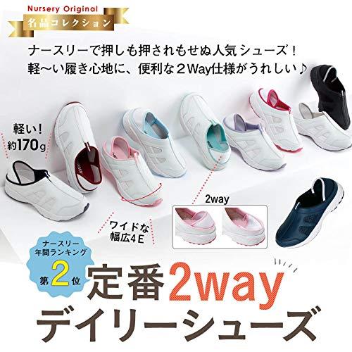 クロージャータイプ プルオン 【ナースリーでダントツ人気!デイリー使いナースシューズの決定版】安い・軽い・幅広!看護師さんはもちろん、介護士さんや清掃など、室内履きのお仕事靴におすすめです。【シューフィッターが開発】FHA認定シューフィッター兼Jaft認定スポーツシューフィッターのナースリーMD酒井聡美が開発!(シューフィッターとは…足のサイズや形、歩き方の癖などを考慮して、足の疾病予防の観点からもっとも履き心地がいい靴を提案する靴選びの専門家です。)【超軽量・滑りにくい】履けばわかる、軽やかな履き心地。つま先上向きでつまずきにくく歩きやすい!靴裏のかかと部分は滑りにくいラバー製。【メッシュで蒸れを軽減】サイドは厚手のメッシュ生地で、足をしっかり守りながら通気性を確保しムレを軽減。甲はステッチ少なめの合皮素材でしっかりガード。【脱ぎ履きしやすい2way】ソフトなストレッチ素材のヒールカップ式かかとを採用。履き口やわらかな深めの設計で脱げにくい。かかとを踏めばサボにもなる2Way仕様。