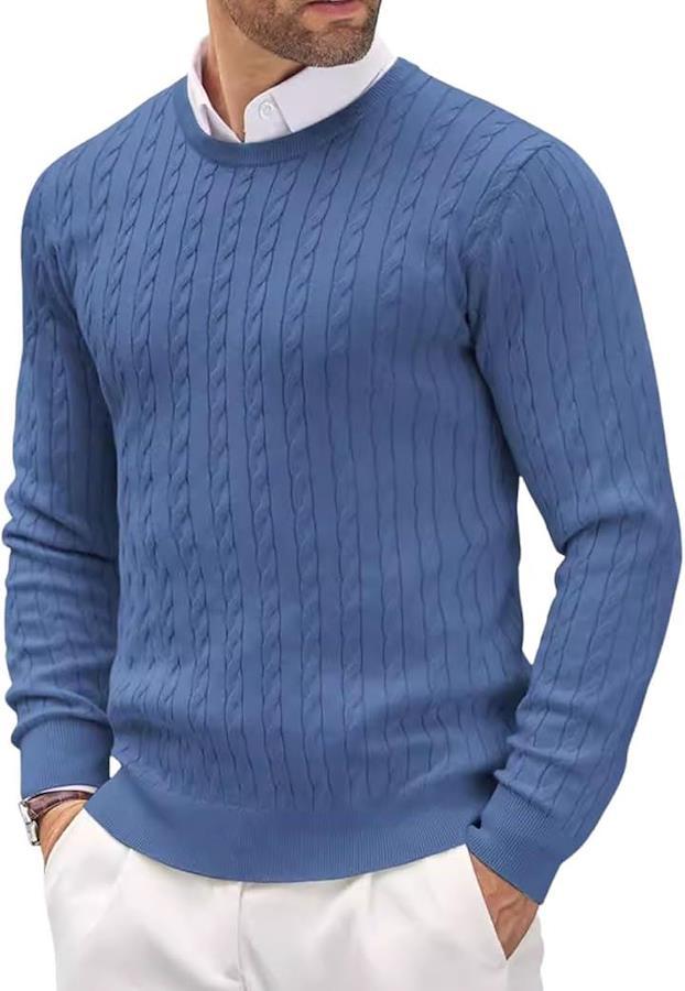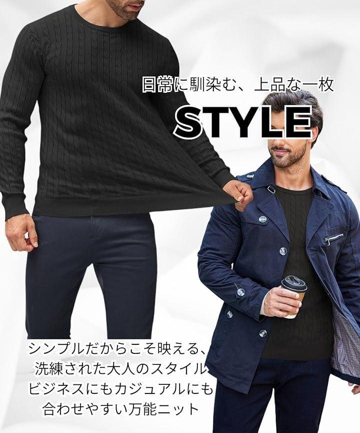 忙しいビジネスマンにもぴったりのメンズケーブルニットセーター。