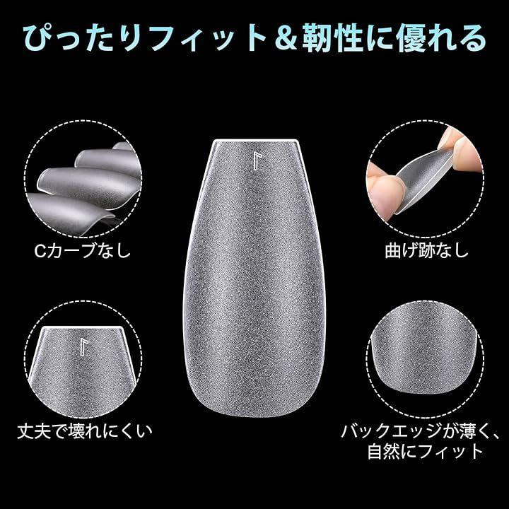 「ナチュラルフィット」このソフトネイルチップは、「薄いトレーリングエッジ、厚いリーディングエッジ」を特徴としています。