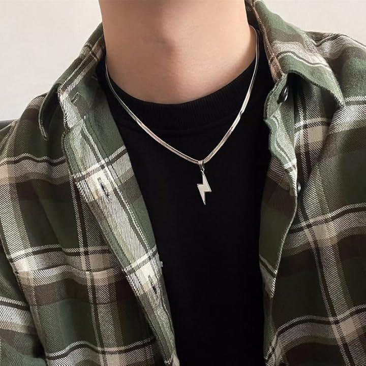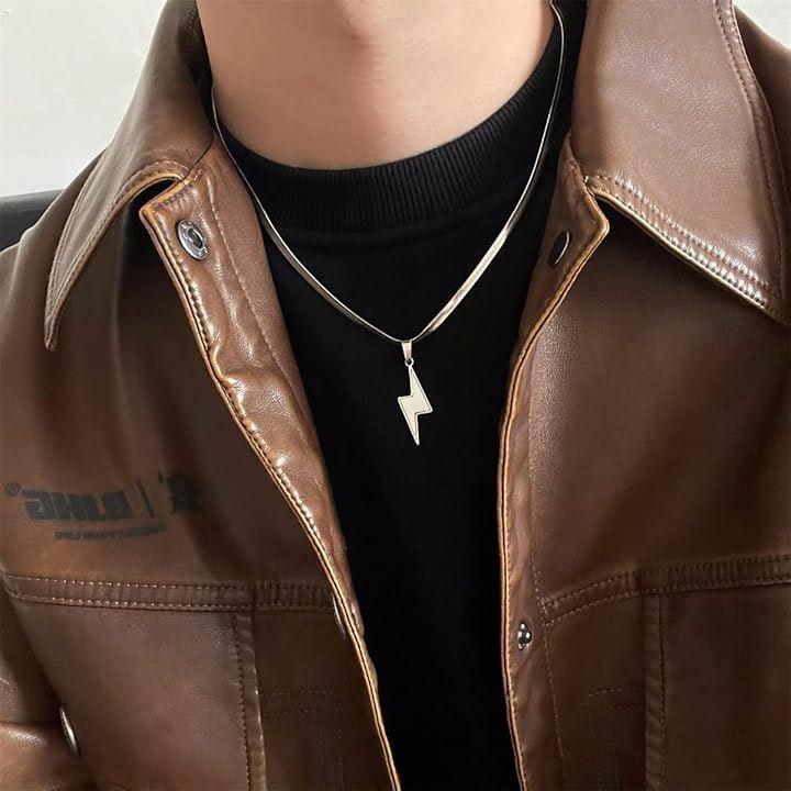 「デザイン」大胆な稲妻モチーフが目を引く、このメンズネックレスは、シンプルながらも存在感たっぷりのデザイン。