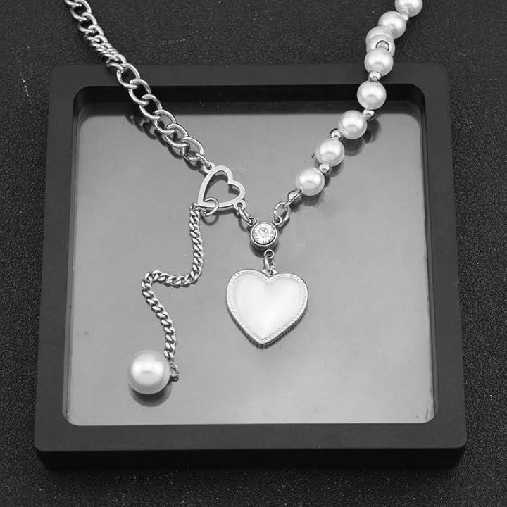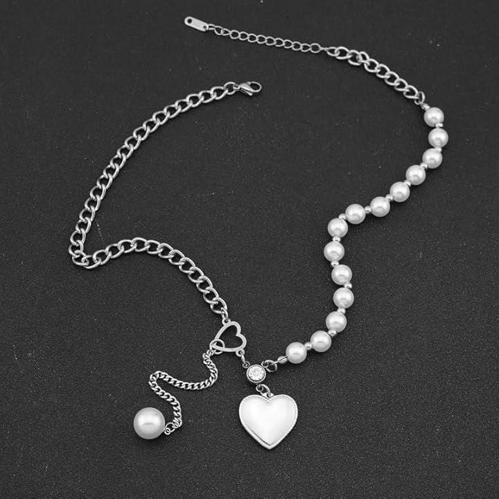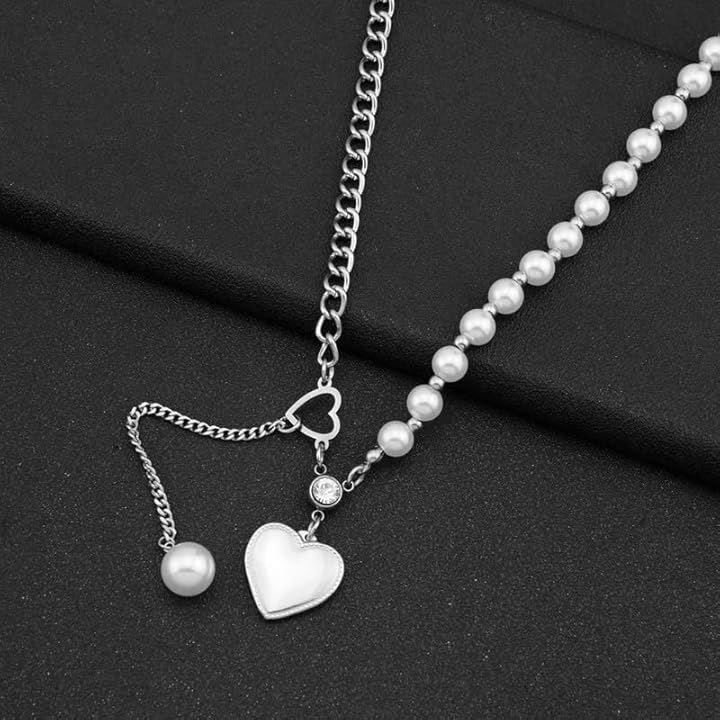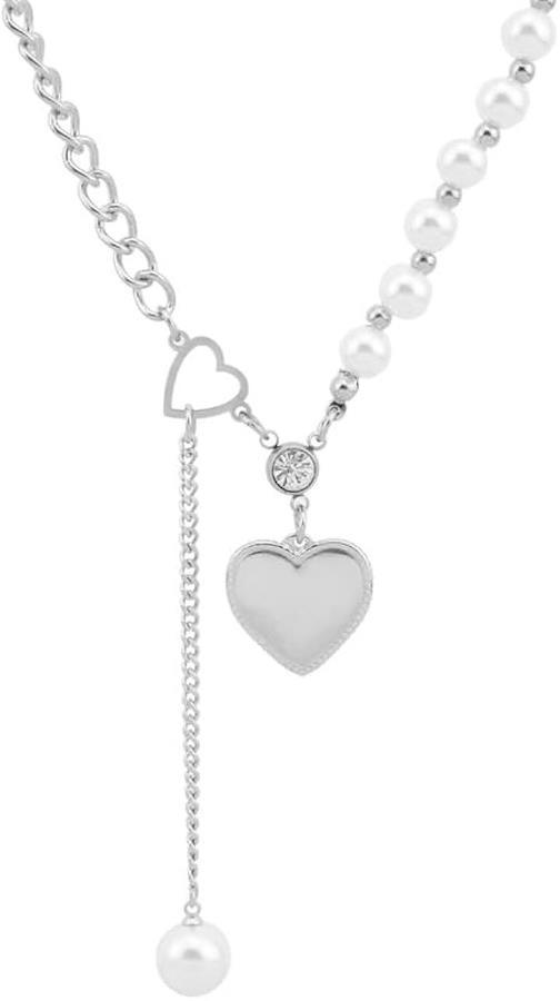 「パールとハートが映える華やかなY字デザイン」大小のパールと艶やかなハートモチーフを組み合わせたトレンド感あふれるY字ネックレス。