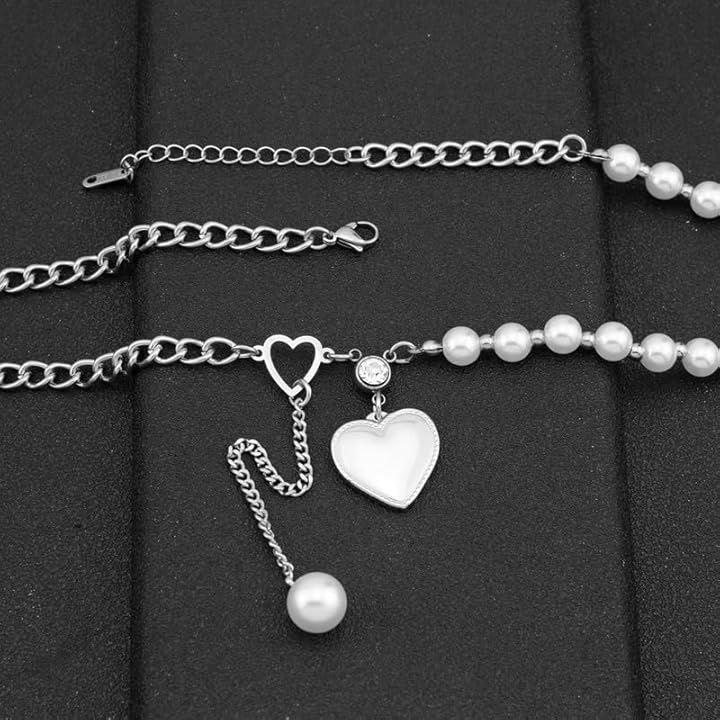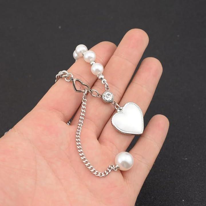 「きらきら輝くストーンで高見え効果」ハートとパールをつなぐ部分に施されたクリアストーンが光を受けてきらめき、顔まわりを明るく演出。