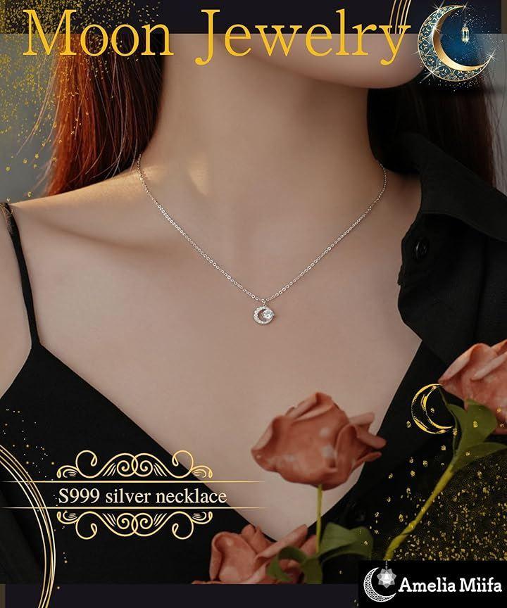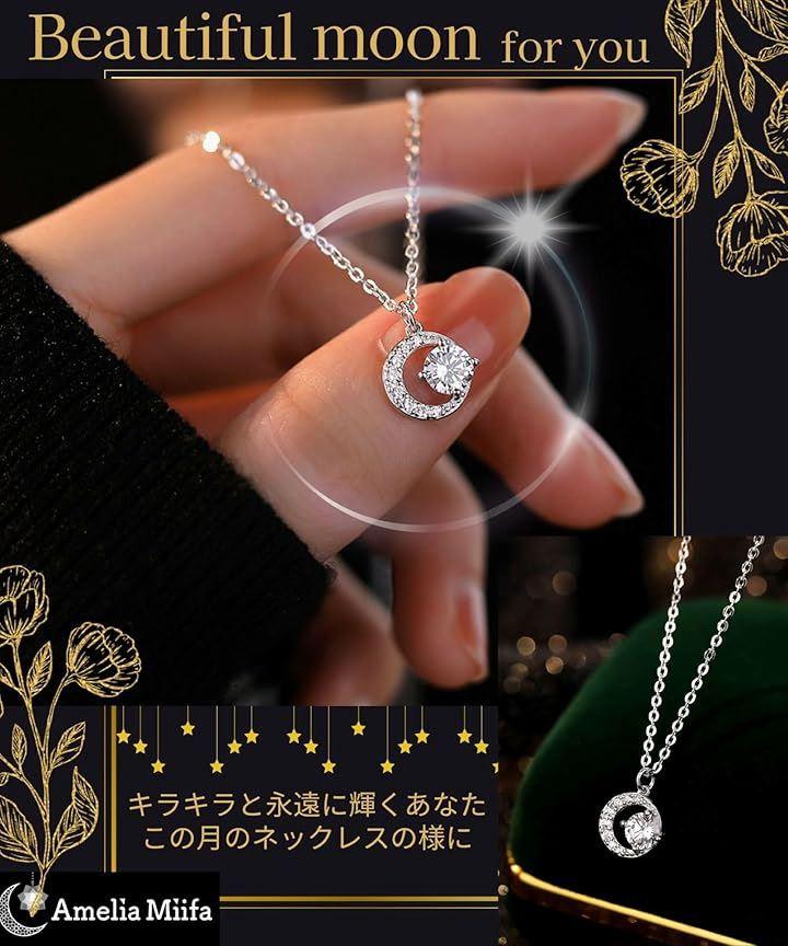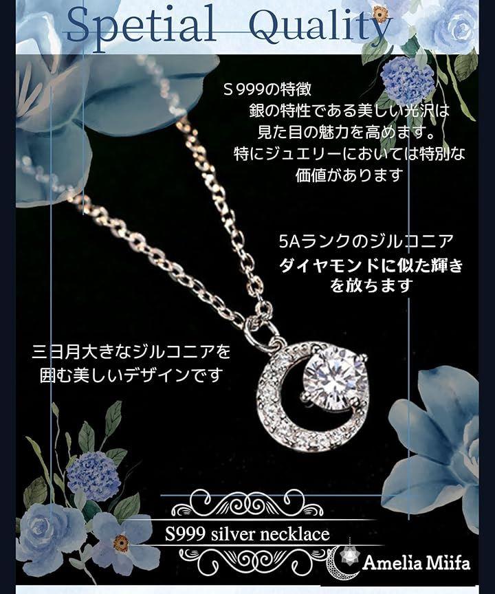 S999純銀を使用し、プラチナメッキが施された上品なデザインは、月と輝く5Aランクジルコニアの調和が特徴です。