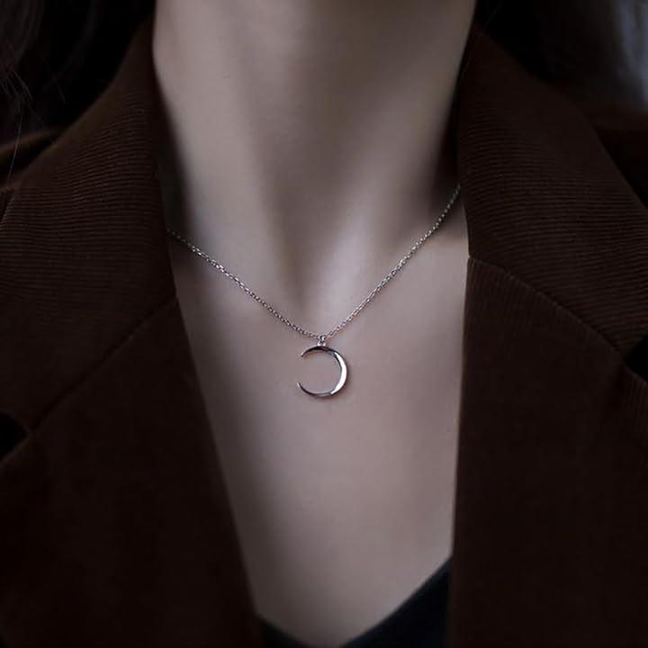 「デザイン」シンプルなワンポイント三日月モチーフネックレス / 優美な曲線を描く三日月モチーフが、首元にさりげない存在感をプラス。
