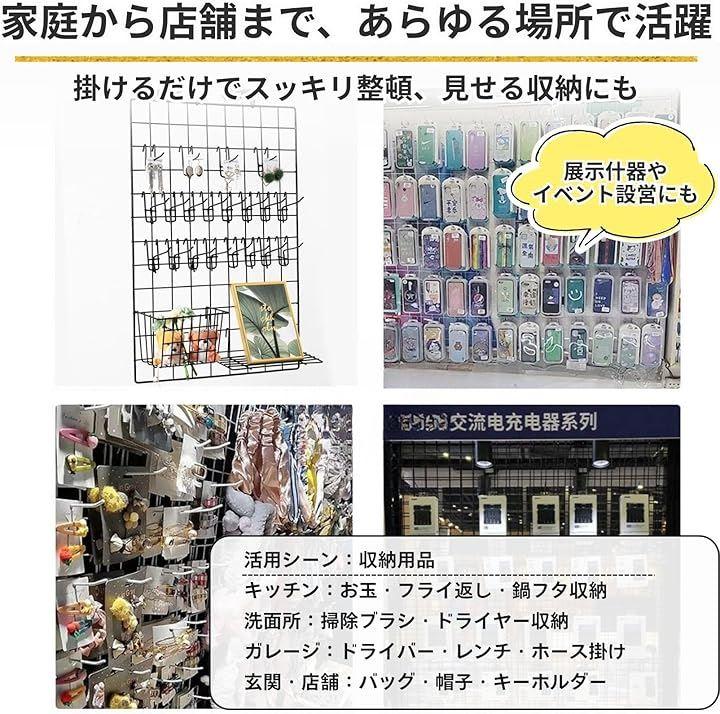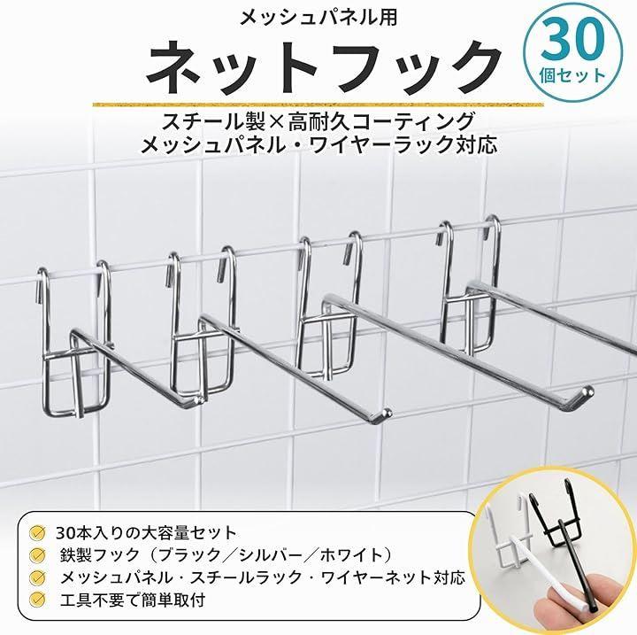 「高い汎用性を備えたネットフック、大容量の30本セット」工具やキッチン用品、帽子、バッグなどを掛けて整理できるネットフックです。