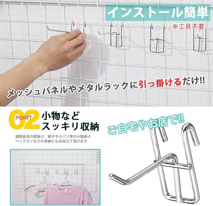 「取り付け簡単」メッシュパネルやスチールラックなどに引っ掛けるだけで、お好きな場所に設置することができます。