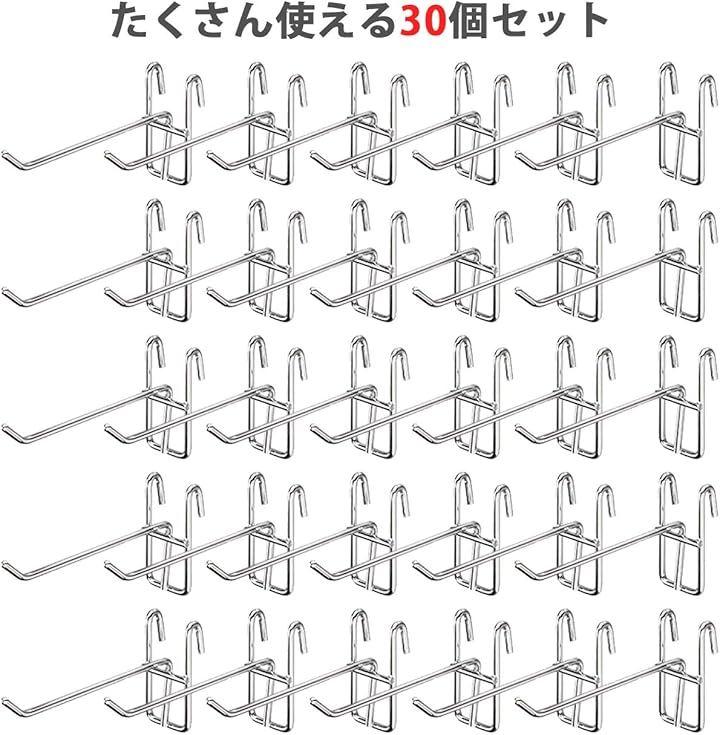 「たくさん使える30本セット」小物の整理や収納、商品のディスプレイにもお使い頂けるネットフックです。