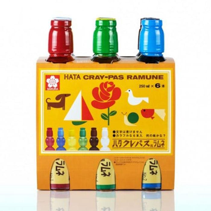 サクラクレパスデザインが目を引く、ラムネ6本セット。