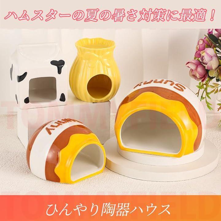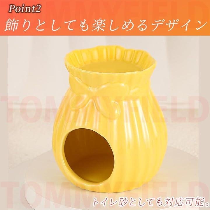 ひんやり効果抜群の陶器ハウスで、愛するハムスターを夏の暑さから守りましょう。冷房対策にぴったりなこのアイテムは、飾りとしても楽しめるデザインで、トイレ砂としても対応可能。
