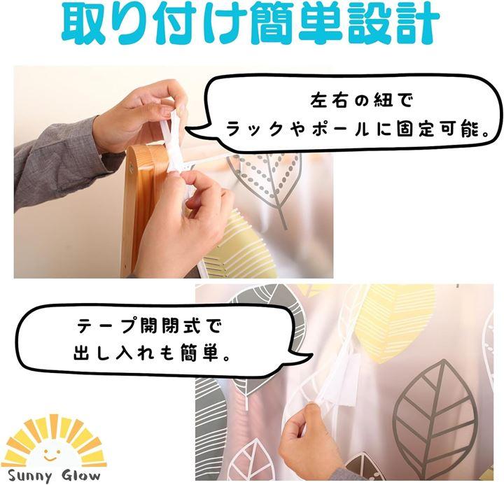 「取り付け簡単設計」左右の紐でラックやポールに固定可能。