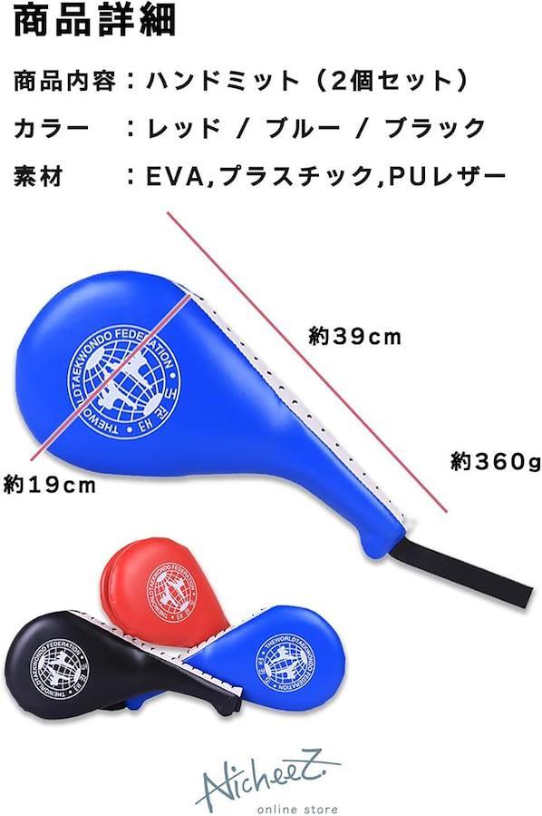 「商品内容」ハンドミット セット数:2個 素材:EVA,プラスチック,PUレザー カラー:ブラック、ブルー、レッド サイズ:長さ/約39cm ミット直径/約19cm 重さ/約360g