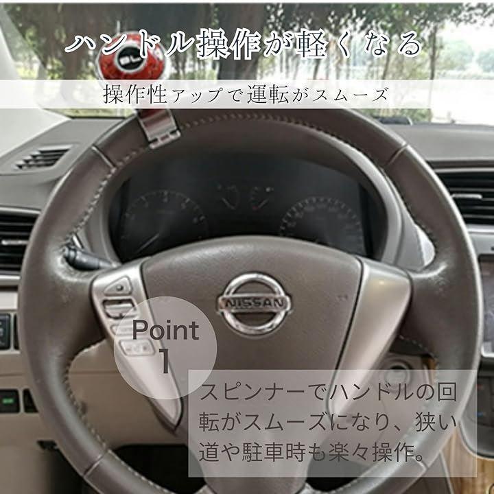 「操作性アップで運転がスムーズ」ステアリングノブがハンドル操作をサポート。