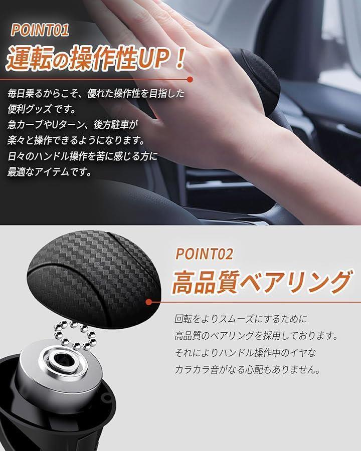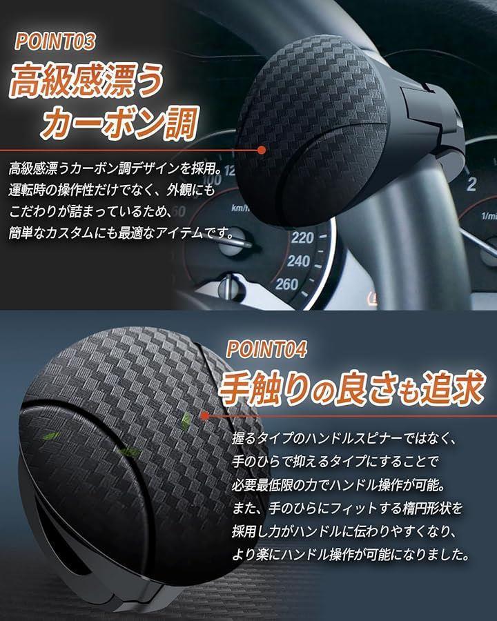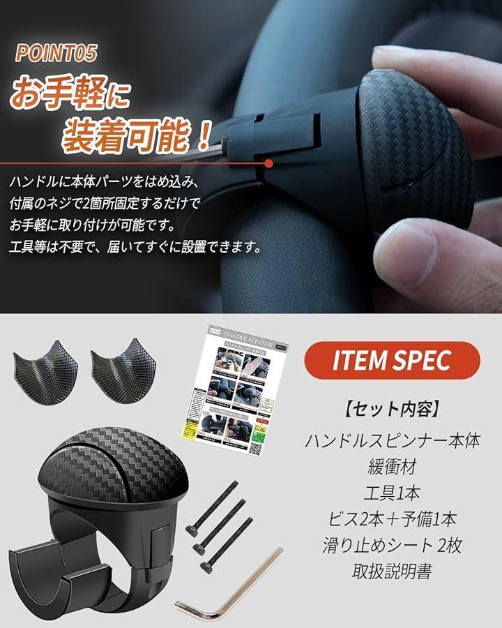 「ハンドルスピンナーとは」ハンドル操作が苦痛に感じる方への補助具として、片手でも急カーブや180度Uターンでの小回りや、駐車入れのバック時が楽々と操作できるようになります。