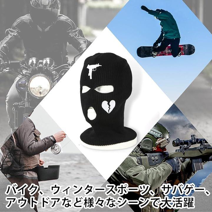 顔全体から首まで覆うデザインのため、雪や雨から顔全体を守ることができ、首元からの冷気も防ぐことができます。