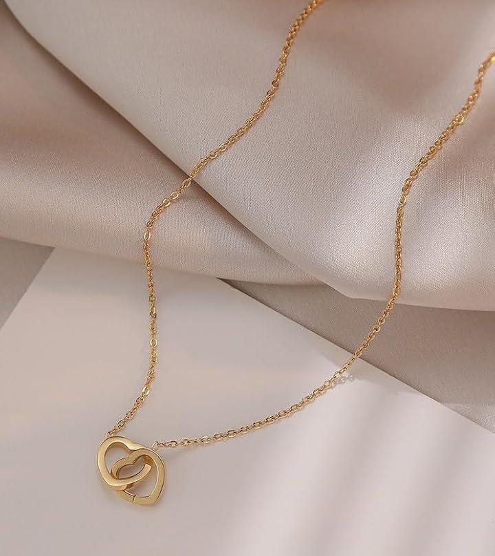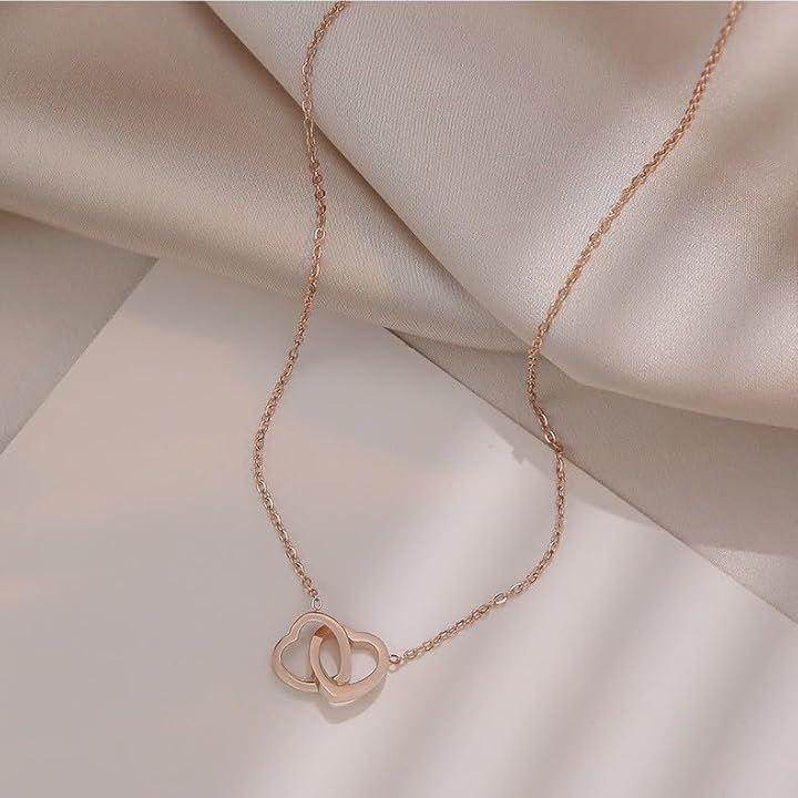「上品なデザインが魅力のダブルハートモチーフ」ふたつのハートが寄り添うように組み合わされた、ダブルハートデザインのネックレス。