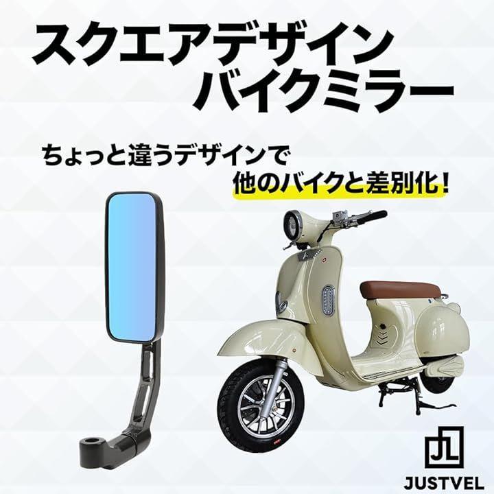 「スクエア形状のサイドミラー」本バイクミラーは目を引くスクエア形状が特徴です。