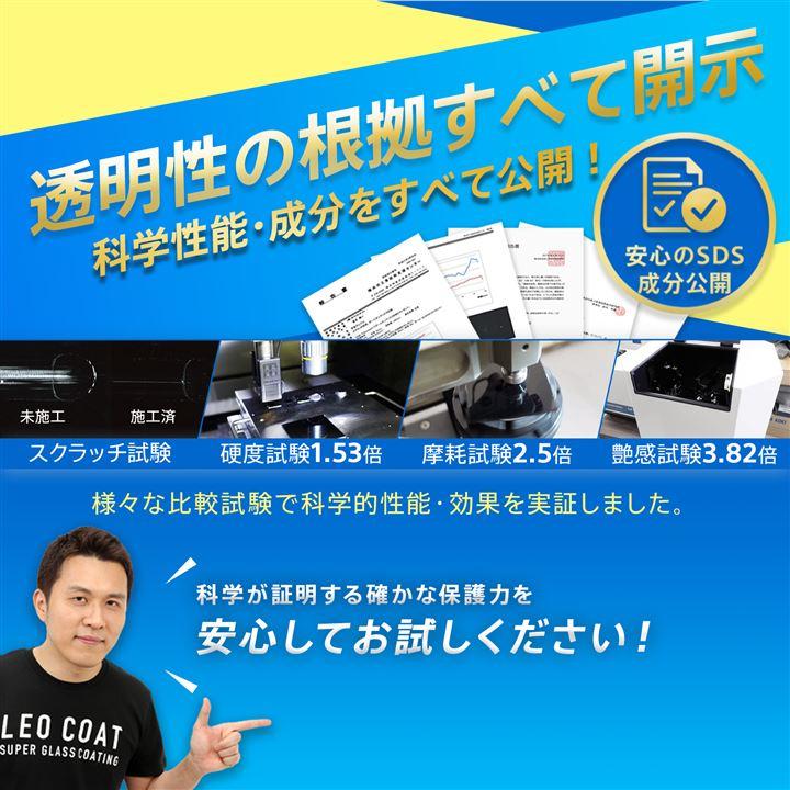 「高品質な施工」プロ仕様下地処理+ガラスとポリマーの極上2層コートで洗車減・防汚性・耐傷性アップ。さらに洗車キズやクスミも改善。