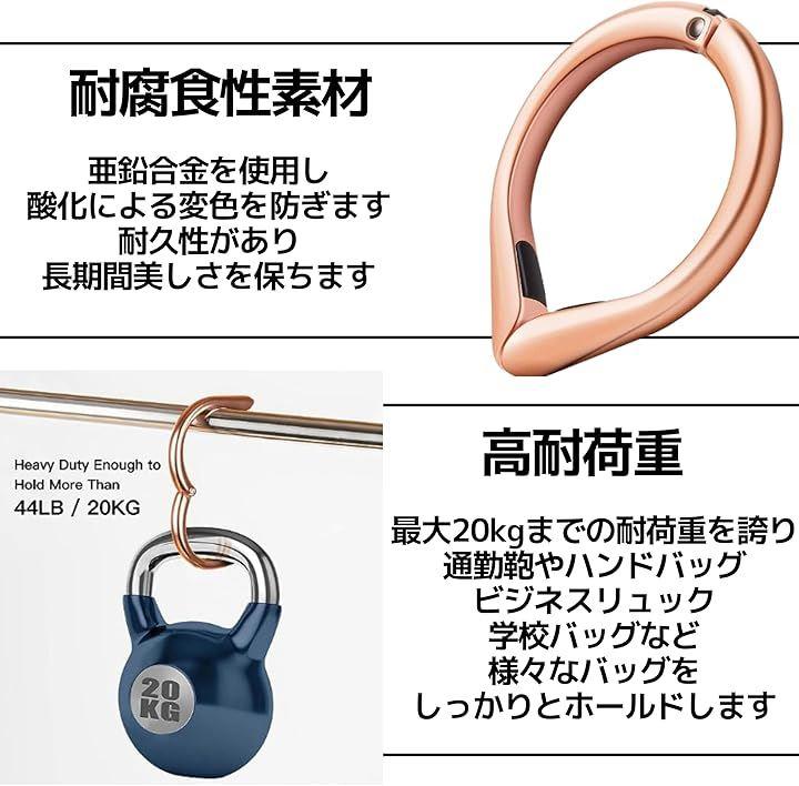 「高耐荷重」最大20kgまでの耐荷重を誇り、通勤鞄やハンドバッグ、ビジネスリュック、学校バッグなど、様々なバッグをしっかりとホールドします。