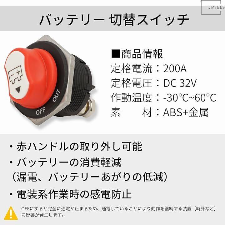 200A、32V DC、対応のバッテリースイッチ(カットオフスイッチ)になります。