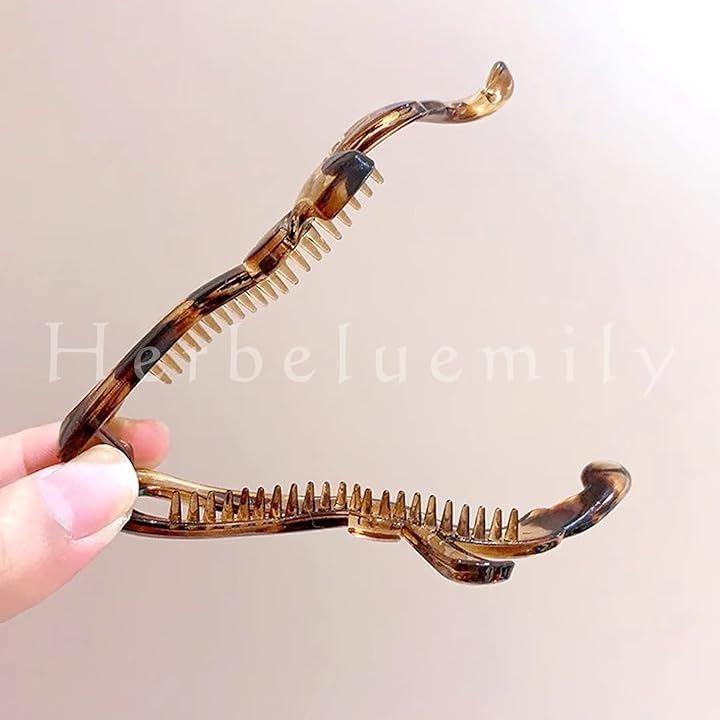 挟んで留める、ダブルクリップ式なのでヘアゴムよりも摩擦を起こさず、しっかり髪をまとめ上げます。