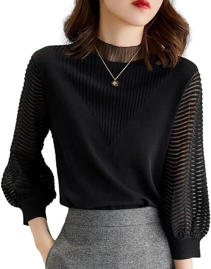 エレガントなスタイルにシアー感のあるパフスリーブが切れ味と華やかさをプラス。