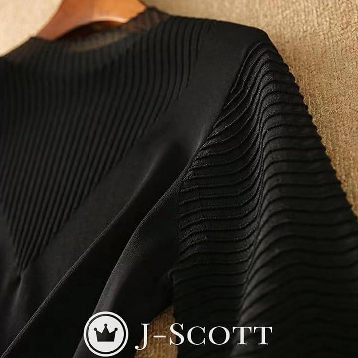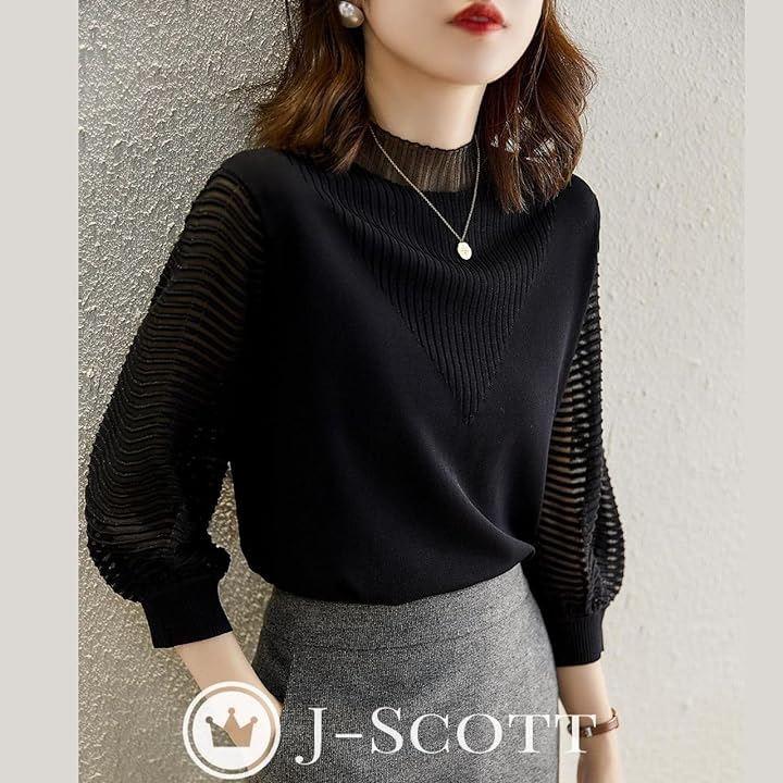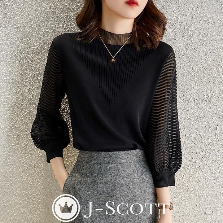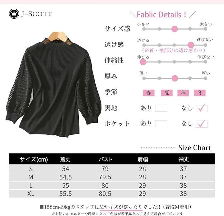 袖と襟部にはシアー感のあるリブニットを使用し、繊細で透明感溢れる1枚に仕上げました。