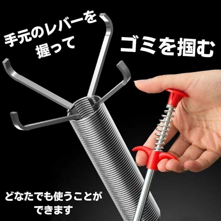 詰まりを掴むときは先端のレバーを握って離すだけで爪部分を自由自在に動かすことができ詰まりをサッと取ることができます。