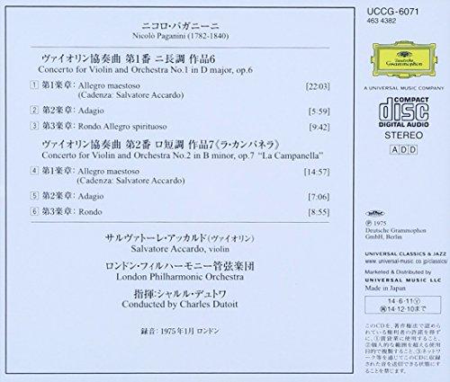 17歳でパガニーニ国際コンクールに優勝し「パガニーニの再来」といわれたアッカルドは、1941年トリノ生まれのヴァイオリニスト。入神のテクニック、明るく艶やかな音色の美しさは群を抜いています。パガニーニのスペシャリストとして知られるアッカルドによるヴァイオリン協奏曲集。華やかな技巧を用いた美しいメロディが奏でられる第1番と、明るいイタリア風の旋律とヴァイオリンの特異な技巧を特徴とする第2番を収録しています。自作のカデンツァを用い、超絶的なテクニックに加え輝かしい音色で朗々と歌い上げるアッカルドの特質は、まさにこの作品にはうってつけのもの。デュトワ指揮のロンドン・フィルハーモニーとの息の合ったアンサンブルも聴きどころです。