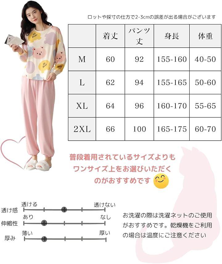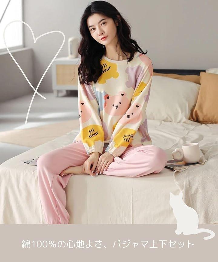 柔らかい薄手長袖の綿100%レディースパジャマは、一年中活躍するルームウェア 部屋着 ナイトウェアです。
