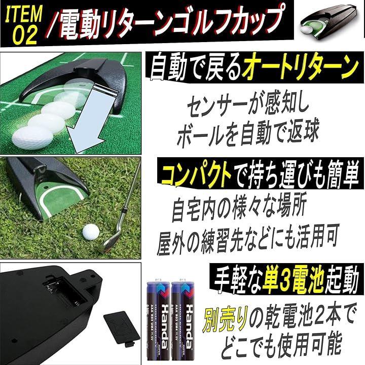 「電動リターンゴルフカップ」センサーがゴルフボールを感知し、ボールを自動で返球するオートリターン仕様。