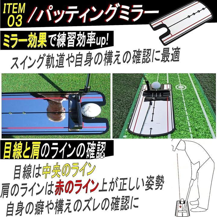 「パッティングミラー」ミラー効果で練習効率up。スイング軌道や自身の構えの確認に最適。目線は中央のライン・肩のラインは赤のライン上が正しい姿勢。