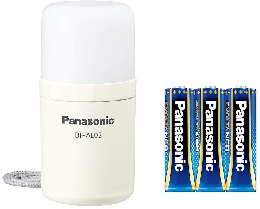持ち運びに便利なコンパクトなランタンチップタイプLEDで明るさ約1.2倍(当社BF-AL01全光束比)LED+乾電池エボルタNEOで約77時間連続使用可能紐の採用で吊り下げ場所が大幅に拡大小雨の中でも使用可能な防滴構造(IPX1相当)本体サイズ:約直径46mm×高さ95mm電源:単3形乾電池×3本付属品:乾電池エボルタNEO単3形×3本、ストラップ持ち運びに便利なコンパクトなランタン本体重量(kg):0.135