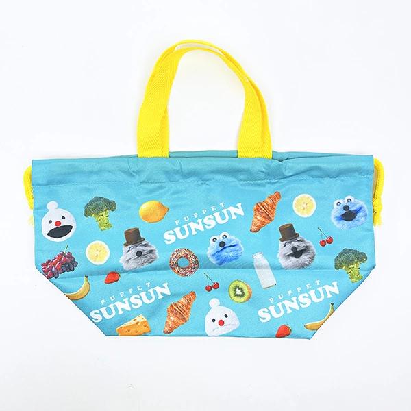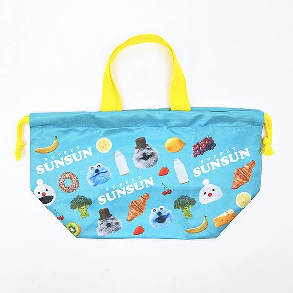 パペットスンスンのランチ巾着です。しわになりにくいのがgood♪持ち手付きで使い勝手◎ぜひスンスンのランチアイテムと一緒に揃えてみてください☆彡