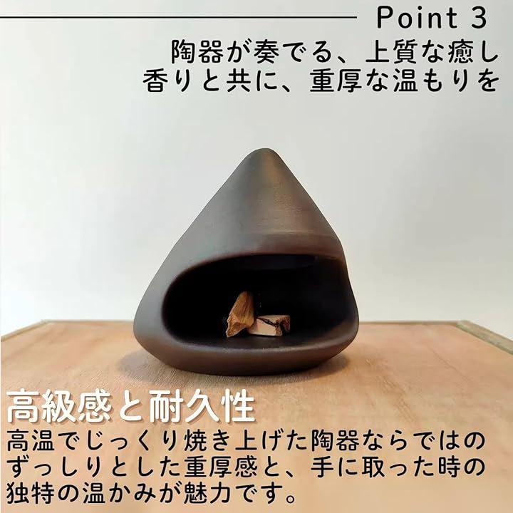 上部の小さな穴からゆっくりと煙が抜け、視覚的にも癒される設計。
