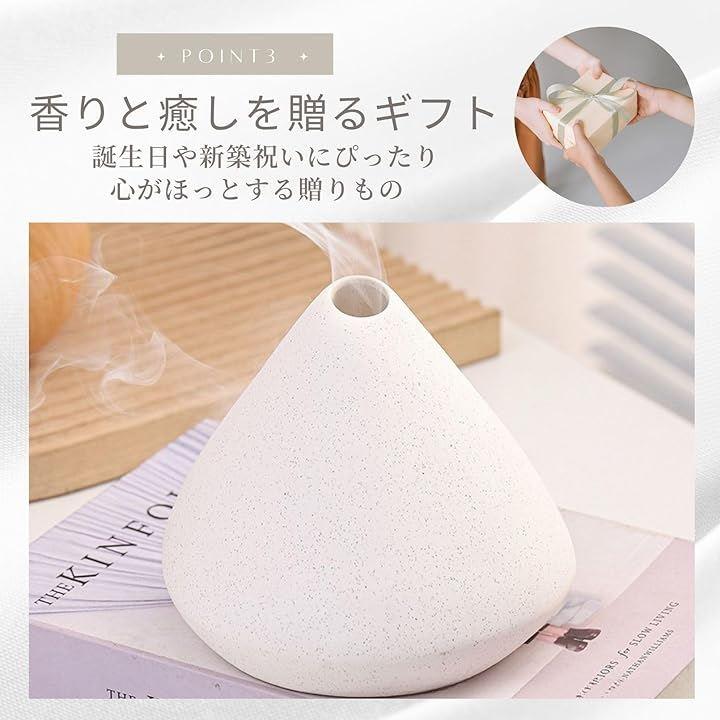 丸みのある本体にはスティックを簡単に入れられる広口設計、上部には煙が立ち上がる通気孔付きで、幻想的な雰囲気を演出します。