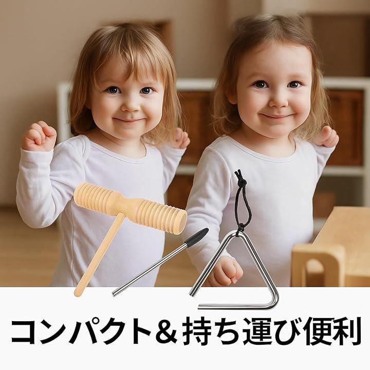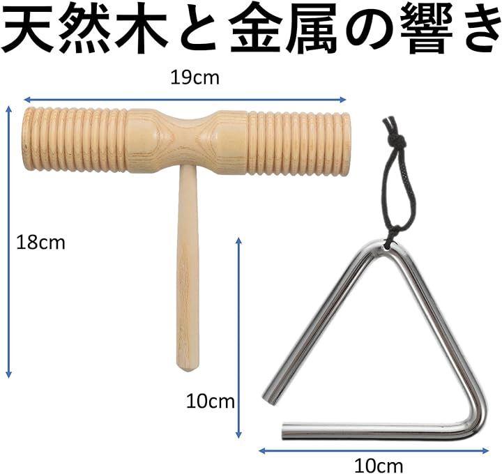 (仕様)サイズ(約): ウッドブロック 19 x 18cm、トライアングル 10 x 10cmセット内容: ウッドブロック、トライアングル*モニターの環境により、色の見え方に若干差が生じる場合があります。