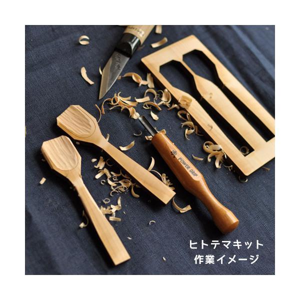すでにある程度型どられたヒノキの木材を、カッター、彫刻刀で削り、ヤスリで綺麗に磨き上げることで、驚くほど滑らかで優しい木の食器が出来上がります。お気に入りの食器の中でも、自分で作ったものであれば、なおさら愛着が湧くはずです。