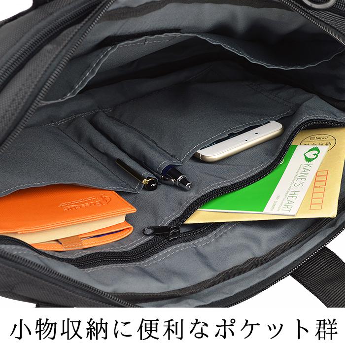 【正面】・ファスナーポケット【背面】・キャリーバー通し【メインルーム内部】・アテポケット・ファスナーポケット・小物ポケット×2・ペン差し【正面ファスナーポケット内部】・小物ポケット×2